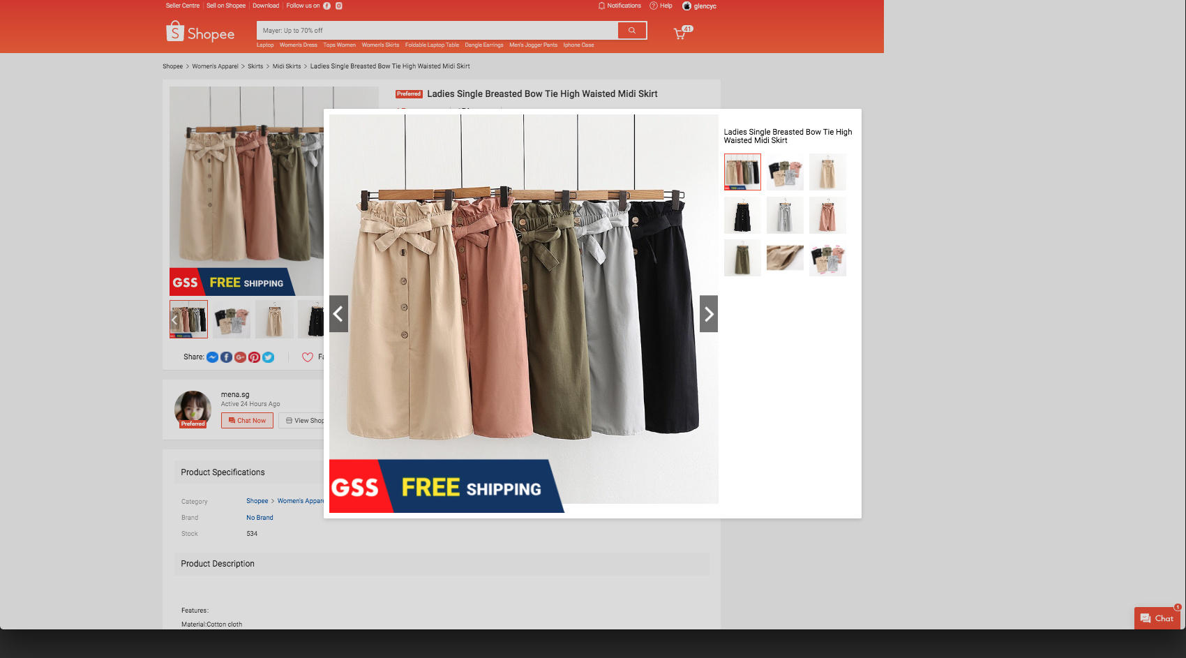 Url: https://shopee.sg/Ladies-Single-Breasted-Bow-Tie-High-Waisted-Midi-Skirt-i.64376286.1482420533