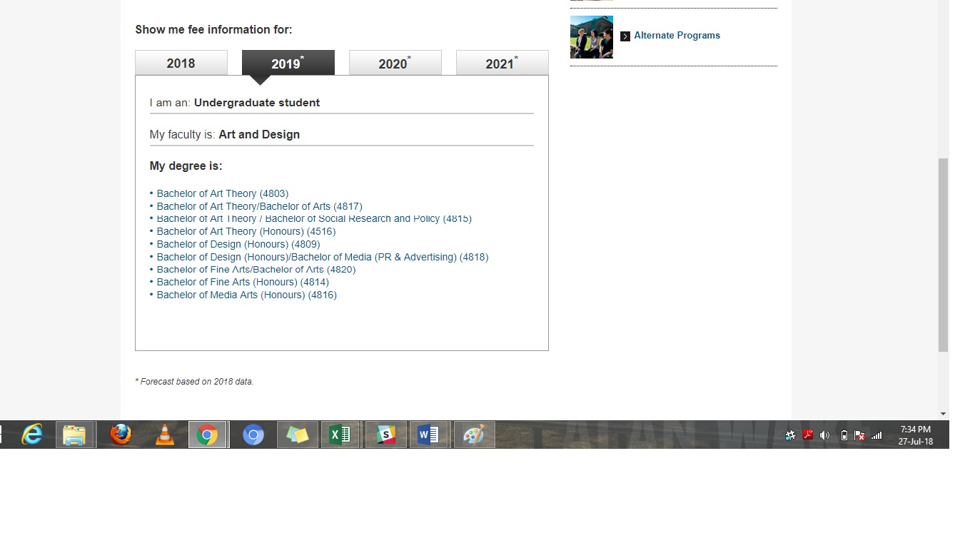 Starting URL :- http://indicativefees.unsw.edu.au/