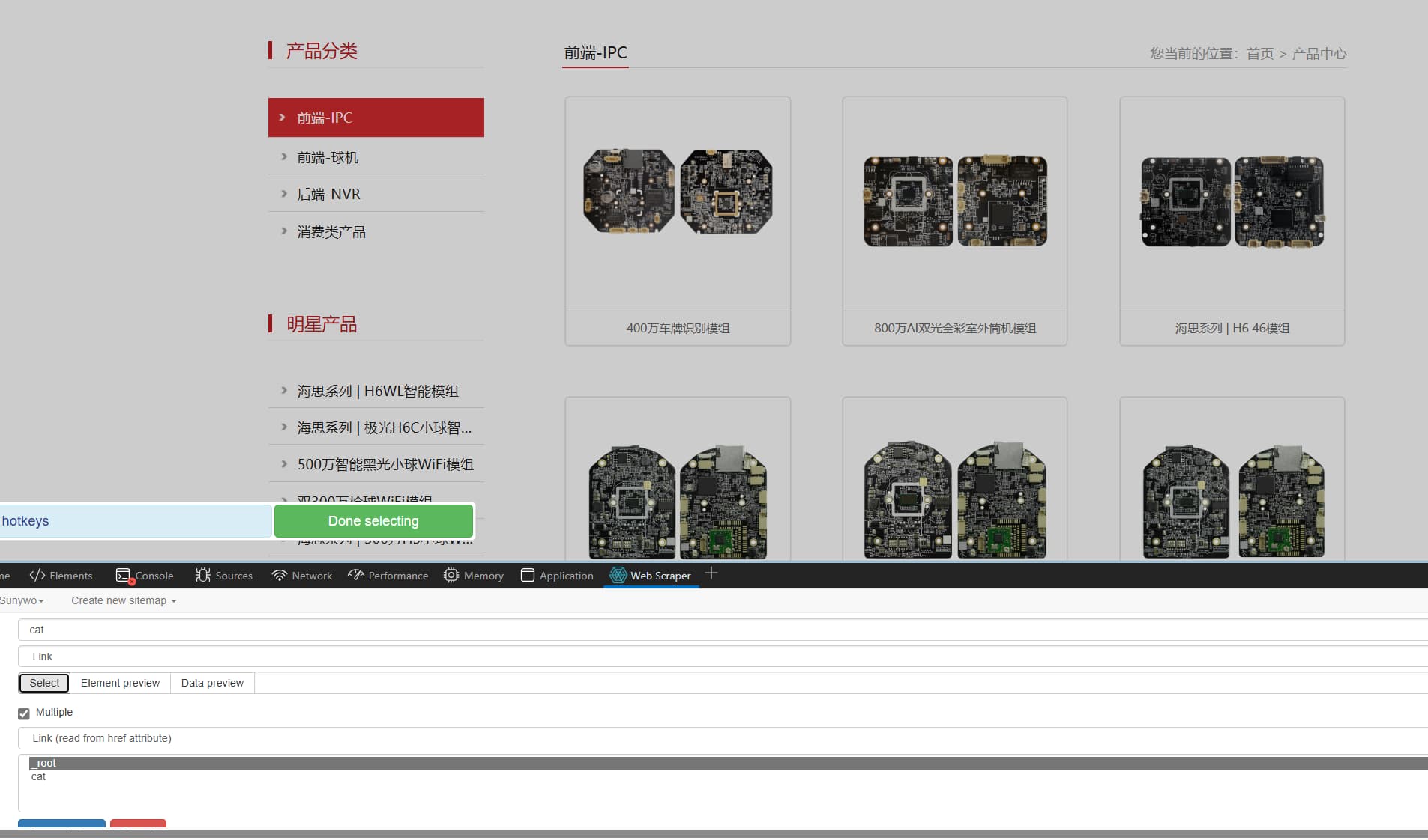 I want to create a link selector for the URL "产品中心 - 尚维国际". However, when I clicked "select" button, no links were detected.