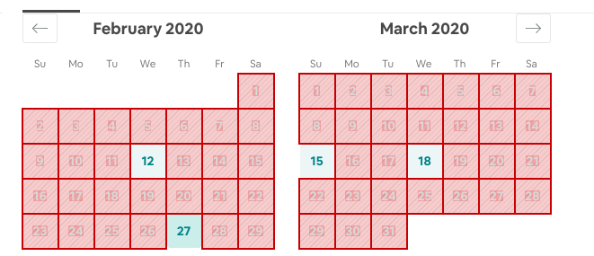 Airbnb rooms have a calendar with hatched dates that are not available. I'm trying to count those.