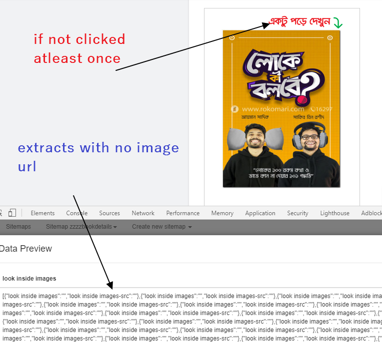 {"_id":"zzzzbookdetails","startUrl":["https://www.rokomari.com/book/194542/loke-ki-bolbe"],"selectors":[{"id":"booktitle","type":"SelectorText","parentSelectors":["_root"],"selector":".details-book-main-info__header h1","multiple":false,"regex":"","delay":0},{"id":"price","type":"SelectorText","parentSelectors":["_root"],"selector":"span.sell-price","multiple":false,"regex":"","delay":0},{"id":"look inside images","type":"SelectorGroup","parentSelectors":["_root"],"selector":"div.lookInsideDiv img","delay":0,"extractAttribute":"src"}]}