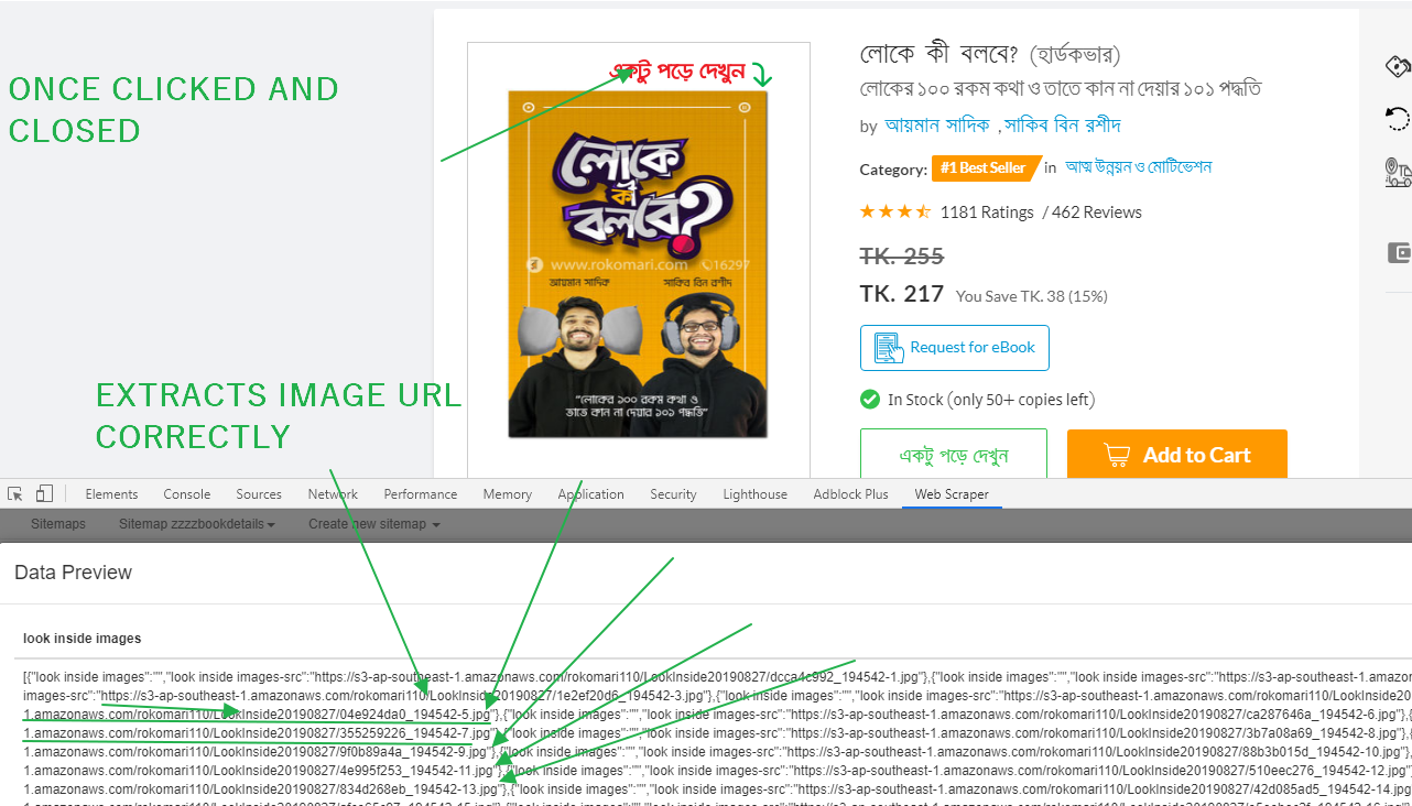 Want to scrape look inside images,inside pages load as images after visitor clicks on "look inside "