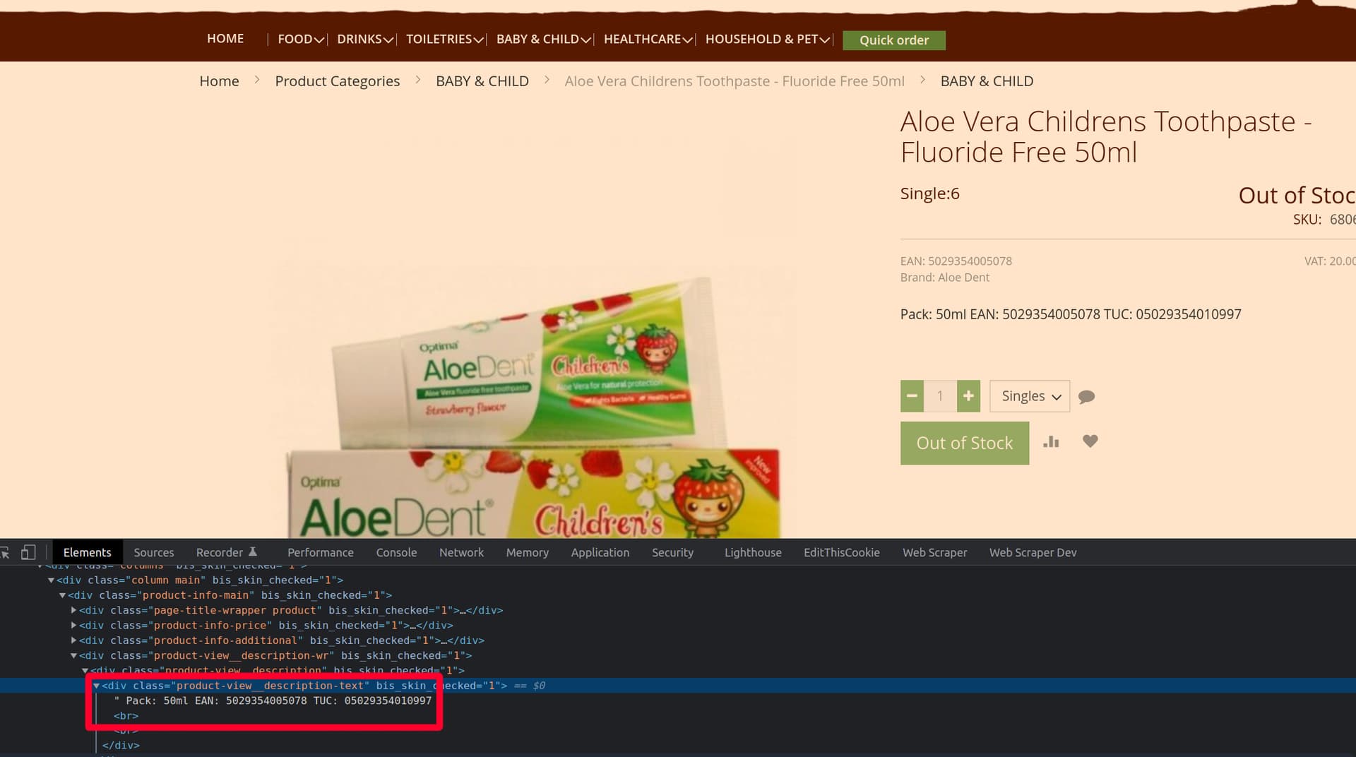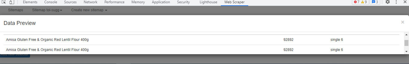 {"_id":"food","startUrl":["https://shop.treeoflife.co.uk/food.html"],"selectors":[{"id":"sub-cat","parentSelectors":["_root"],"type":"SelectorLink","selector":".active .item a","multiple":true,"delay":0},{"id":"sub-sub","parentSelectors":["sub-cat"],"type":"SelectorLink","selector":".active .item a","multiple":true,"delay":0},{"id":"page","parentSelectors":["sub-sub","page"],"paginationType":"auto","selector":"div:nth-of-type(7) strong.page, div:nth-of-type(7) a.page","type":"SelectorPagination"},{"id":"product","parentSelectors":["sub-sub","page"],"type":"SelectorLink","selector":".product a.product-item-link","multiple":true,"delay":0}]}