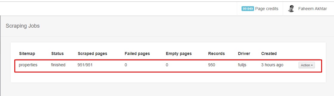 I am scraping properties from a site(mentioned below). I have created sitemap but when I tested it in cloud scraper it shows "Finished" after scraping one page. Can you guys please check site map and let me know what I'm missing? Thanks