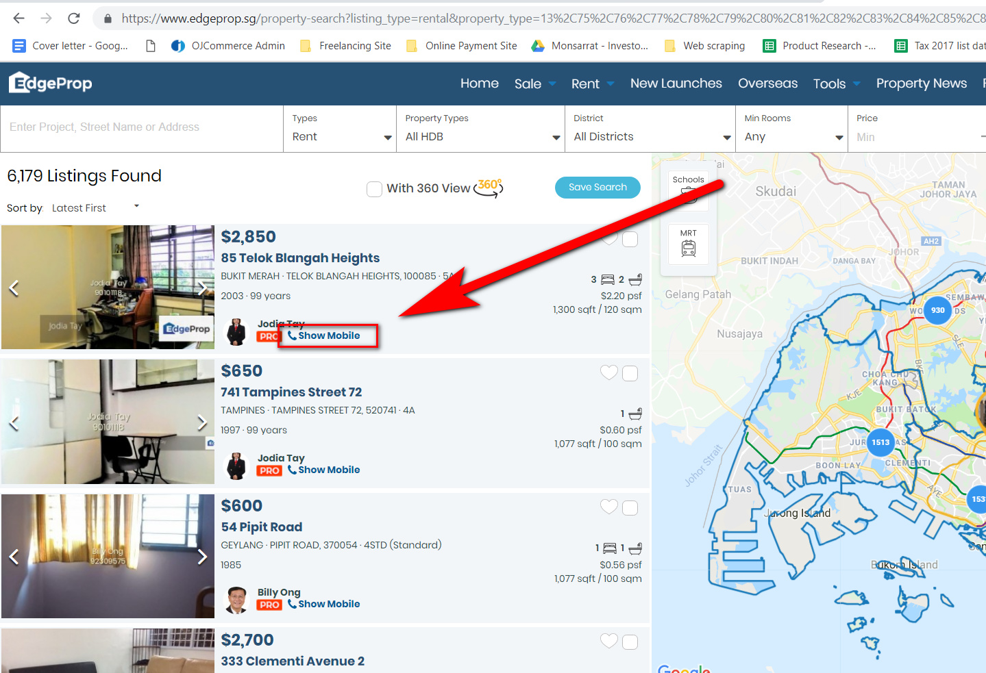{"_id":"vaia_edgeprop","startUrl":["https://www.edgeprop.sg/property-search?listing_type=rental&property_type=13%2C75%2C76%2C77%2C78%2C79%2C80%2C81%2C82%2C83%2C84%2C85%2C86%2C87%2C88%2C89%2C90%2C91%2C92%2C93%2C94%2C95%2C99%2C100%2C96%2C101%2C102%2C97%2C98&district=&bedroom_min=&asking_price_min=&asking_price_max=&floor_area_min=&floor_area_max=&land_area_min=&land_area_max=&tenure=&bathroom=&furnishing=&completed=&level=&completion_year_min=&completion_year_max=&rental_yield=&high_rental_volume=&high_sales_volume=&deals=&nearby_amenities=&amenities_distance=500&rental_type=&keyword_features=&keyword=&asset_id=&resource_type=&x=&y=&radius=1000&search_by=&search_by_distance=&search_by_location=&search_by_showmap=true&below_valuation=&map_zoom=&asset_lat=&asset_lng=&page=1&pageSize=10&order_by=posted_desc"],"selectors":[{"id":"element click","type":"SelectorElementClick","parentSelectors":["_root"],"selector":"div.right-container","multiple":true,"delay":"2000","clickElementSelector":".fa-caret-right","clickType":"clickMore","discardInitialElements":"do-not-discard","clickElementUniquenessType":"uniqueCSSSelector"},{"id":"Property Name","type":"SelectorText","parentSelectors":["element click"],"selector":"div.row.property-name-row div > span","multiple":false,"regex":"","delay":0},{"id":"Address","type":"SelectorText","parentSelectors":["element click"],"selector":"div.property-district > div","multiple":false,"regex":"","delay":0},{"id":"Size","type":"SelectorText","parentSelectors":["element click"],"selector":"div.row:nth-of-type(9) div > span","multiple":false,"regex":"","delay":0},{"id":"phone","type":"SelectorElementClick","parentSelectors":["element click"],"selector":"span.show","multiple":false,"delay":0,"clickElementSelector":"span.show","clickType":"clickOnce","discardInitialElements":"do-not-discard","clickElementUniquenessType":"uniqueText"},{"id":"show number","type":"SelectorText","parentSelectors":["phone"],"selector":"parent ","multiple":false,"regex":"","delay":0}]}