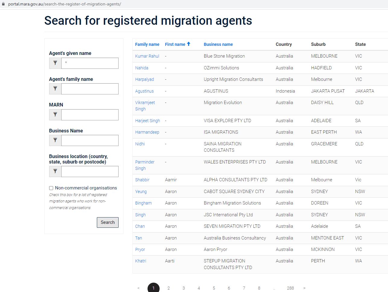 {"_id":"omara","startUrl":["https://portal.mara.gov.au/search-the-register-of-migration-agents/"],"selectors":[{"id":"next","paginationType":"auto","parentSelectors":["_root","next"],"selector":"a[data-page='2'][data-toggle]","type":"SelectorPagination"},{"delay":0,"id":"agent","multiple":true,"parentSelectors":["_root","next"],"selector":"a.details-link","type":"SelectorLink"},{"delay":0,"id":"Name","multiple":false,"parentSelectors":["agent"],"regex":"","selector":"label.resgister-fullname","type":"SelectorText"},{"delay":0,"id":"MARN","multiple":false,"parentSelectors":["agent"],"regex":"","selector":"label:nth-of-type(3)","type":"SelectorText"},{"delay":0,"id":"Status","multiple":false,"parentSelectors":["agent"],"regex":"","selector":"label:nth-of-type(5)","type":"SelectorText"},{"delay":0,"id":"Start_Date","multiple":false,"parentSelectors":["agent"],"regex":"","selector":"label#regDate","type":"SelectorText"},{"delay":0,"id":"Business_Name","multiple":false,"parentSelectors":["agent"],"regex":"","selector":".col-sm-8 tr:contains('Business name') td:nth-of-type(2)","type":"SelectorText"},{"delay":0,"id":"Business_Address","multiple":false,"parentSelectors":["agent"],"regex":"","selector":"tr:contains('Business address') td:nth-of-type(2)","type":"SelectorText"},{"delay":0,"id":"Phone","multiple":false,"parentSelectors":["agent"],"regex":"","selector":"tr:contains('Phone') td:nth-of-type(2)","type":"SelectorText"},{"delay":0,"id":"Email","multiple":false,"parentSelectors":["agent"],"regex":"","selector":"tr:contains('Email address') a:nth-of-type(1)","type":"SelectorText"}]}