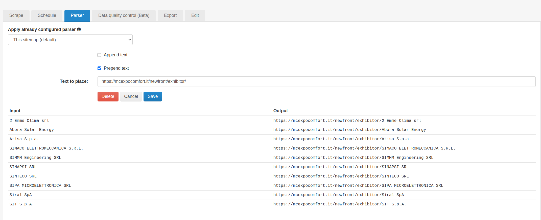 Prepend text using Web Scraper Cloud
