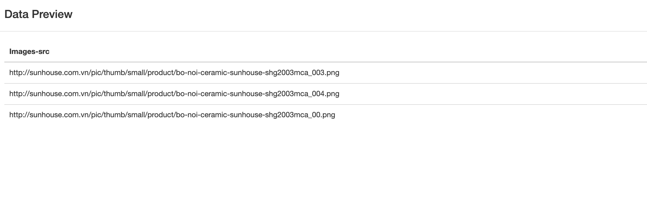 I scap the website , as you can see the preview data is fine. but when csv file is exported -> only one image is scapped.