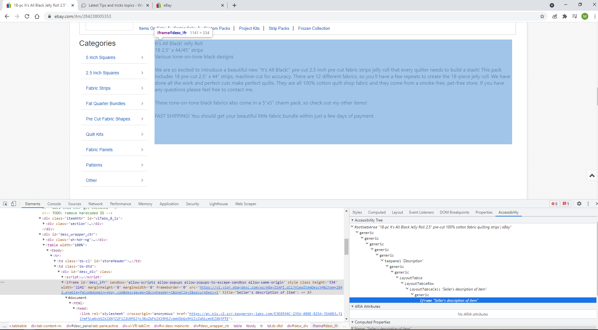 @minhluanxh10 Hi, normally you could access this data by using an iframe:iframe but as it seems there's a weird interaction. Anyway, you can also access the description directly by using the iframe source link and grab the description from there.