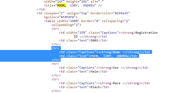 for this example, trying to extract the name, MOON, CORY, ANDREW