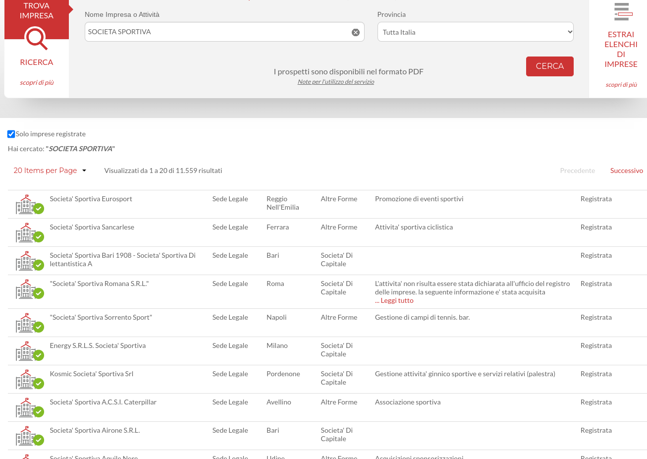 (if it helps here there is the same search engine in english language too: Italian Business Register | Italian companies official data )
