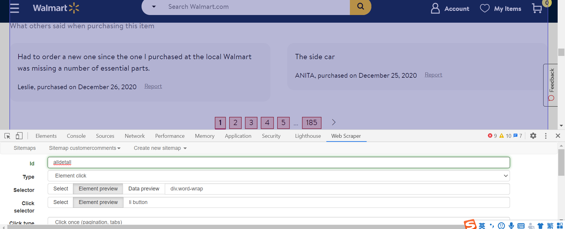 - create selector under 《customercomm 》-》《alldetail》 : element click