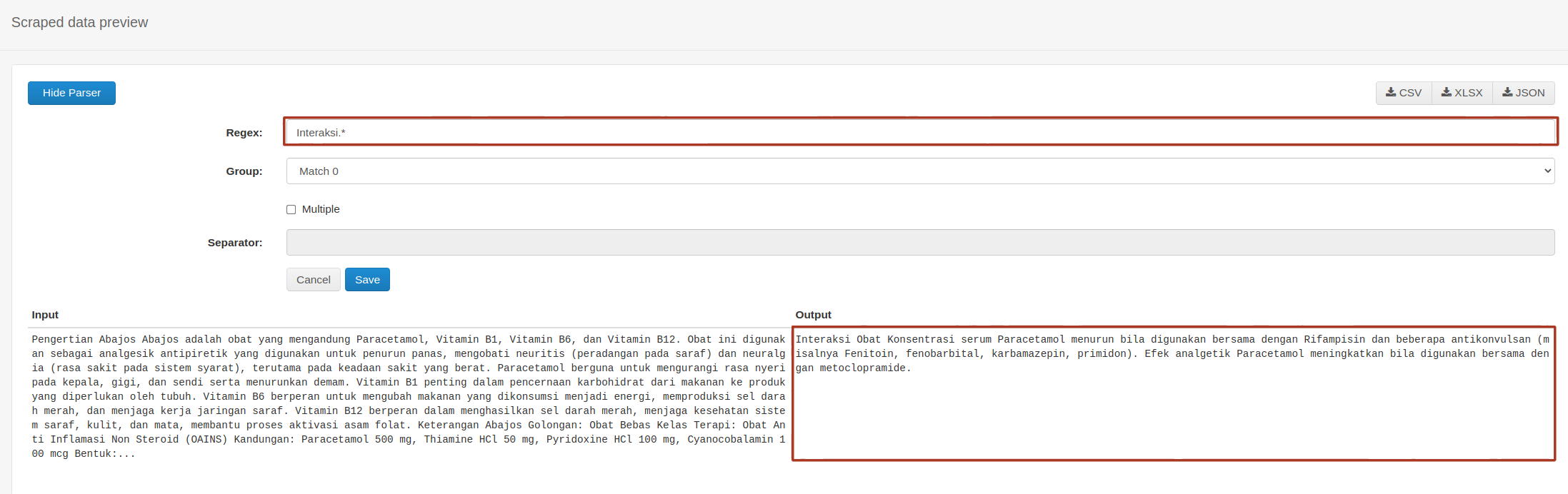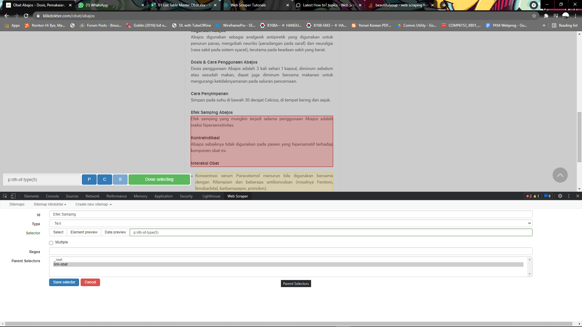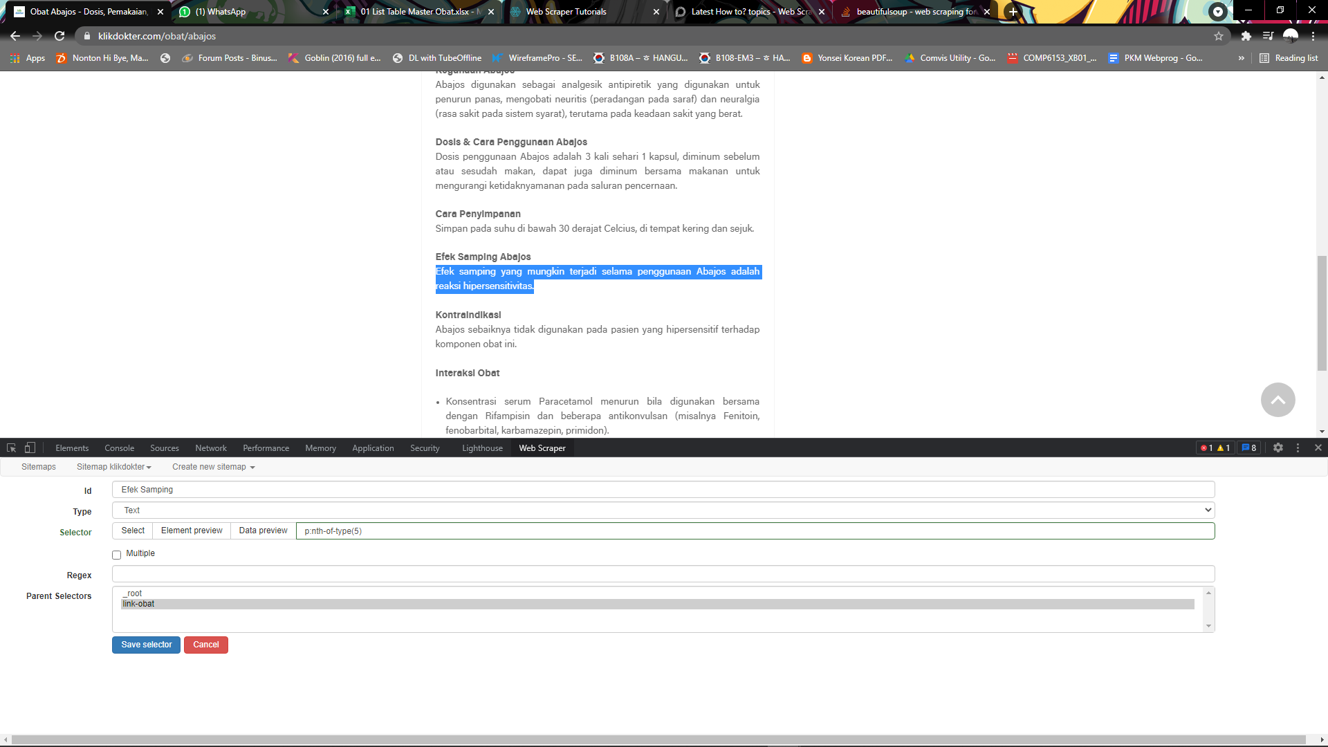 @Michael_Wong If I understood correctly you are looking to get everything under the 'Interaksi Obat' title. If so then you could use a 'Grouped' selector - p:contains("Interaksi Obat") + ul li