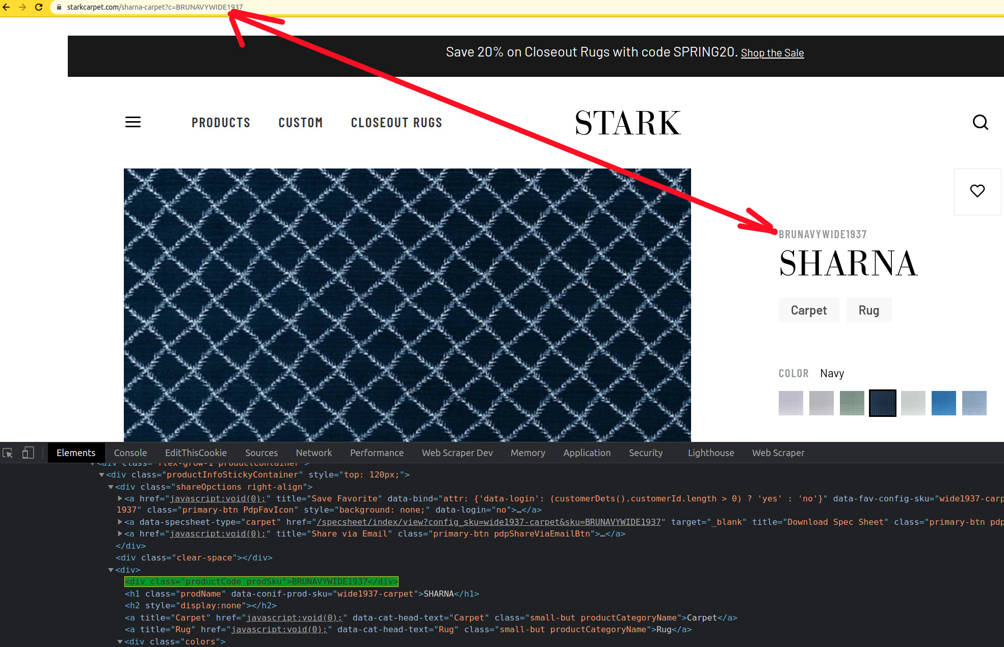 I am scraping collections of carpet from this starting point on Stark website: https://www.starkcarpet.com/search?category=CARPET.