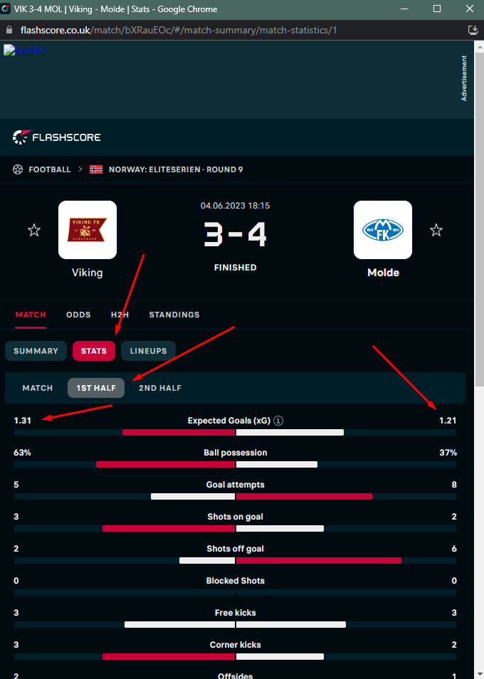 I need to click on each game, then to stats >>> 1st half and scrape the Expected Goals for both the home and away teams, as per the attached screenshot.
