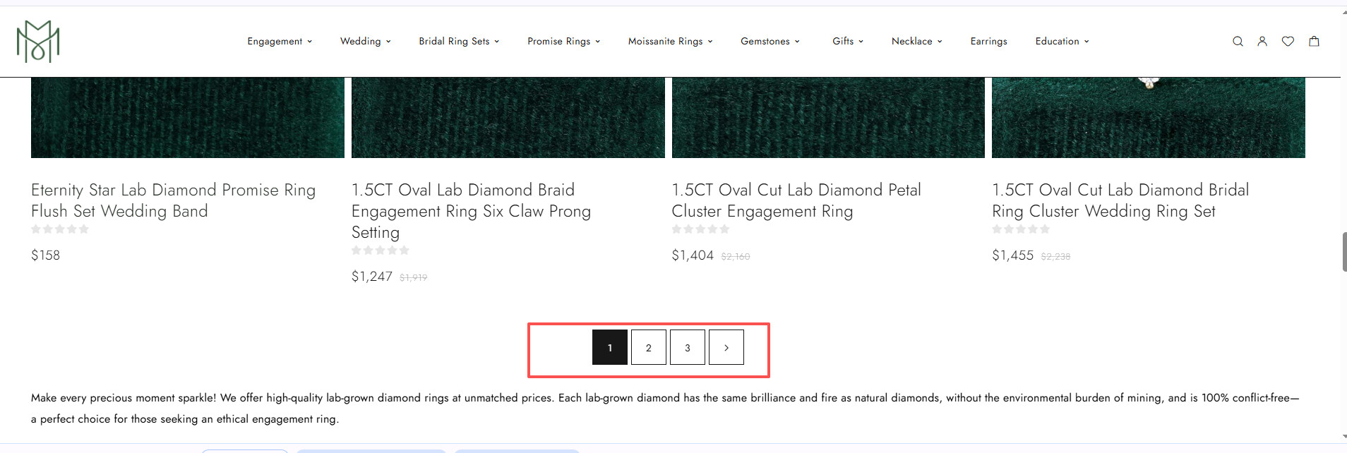 2.When I select one of the gemstones and open its ring collection page, some of the pages have pagination while others don’t.