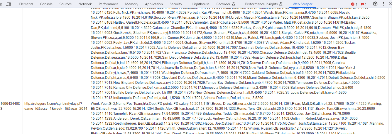 I'd like to scrape and export the data on this website: Weekly Football Points