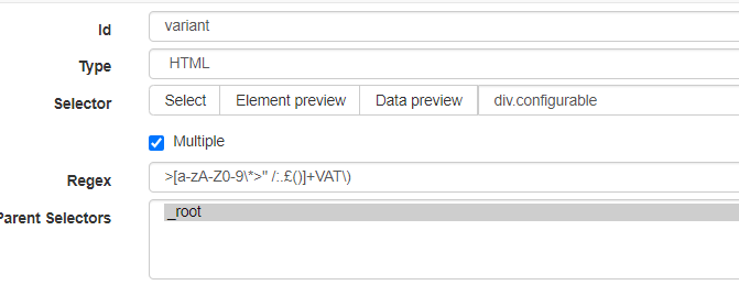 I'd like to scrape variants of a product but there is no link so i can't select 'Link' selector.