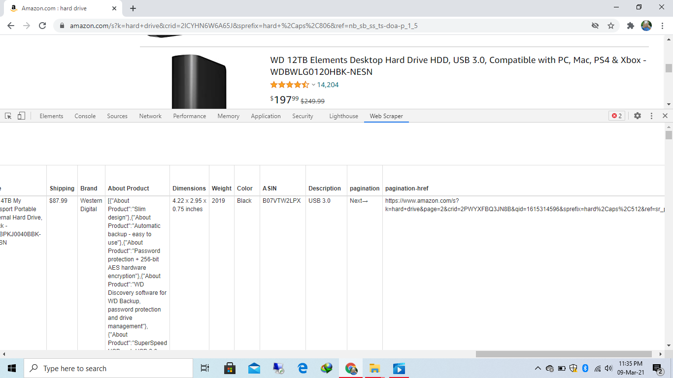 {"_id":"amazon","startUrl":["https://www.amazon.com/s?k=hard+drive&crid=2PWYXFBQ3JN8B&sprefix=hard%2Caps%2C512&ref=nb_sb_ss_ts-doa-p_1_4"],"selectors":[{"id":"products links","type":"SelectorLink","parentSelectors":["_root"],"selector":"div.rush-component .rush-component .a-size-mini a, .celwidget > div.s-include-content-margin .a-size-mini a","multiple":true,"delay":0},{"id":"Price","type":"SelectorText","parentSelectors":["products links"],"selector":"span.priceBlockBuyingPriceString","multiple":false,"regex":"","delay":0},{"id":"Image1","type":"SelectorImage","parentSelectors":["products links"],"selector":"li.imageThumbnail:nth(0) img","multiple":false,"delay":0},{"id":"Image2","type":"SelectorImage","parentSelectors":["products links"],"selector":"li.imageThumbnail:nth(1) img","multiple":false,"delay":0},{"id":"Image3","type":"SelectorImage","parentSelectors":["products links"],"selector":"li.imageThumbnail:nth(2) img","multiple":false,"delay":0},{"id":"Image4","type":"SelectorImage","parentSelectors":["products links"],"selector":"li.imageThumbnail:nth(3) img","multiple":false,"delay":0},{"id":"Image5","type":"SelectorImage","parentSelectors":["products links"],"selector":"#a-autoid-7-announce img","multiple":false,"delay":0},{"id":"Title","type":"SelectorText","parentSelectors":["products links"],"selector":"span.a-size-large","multiple":false,"regex":"","delay":0},{"id":"Shipping","type":"SelectorText","parentSelectors":["products links"],"selector":"span#price_inside_buybox","multiple":false,"regex":"","delay":0},{"id":"Brand","type":"SelectorText","parentSelectors":["products links"],"selector":"tr:contains('Brand') .a-span9 span","multiple":false,"regex":"","delay":0},{"id":"About Product","type":"SelectorGroup","parentSelectors":["products links"],"selector":".a-spacing-mini li:nth-of-type(n+2) span","delay":0,"extractAttribute":""},{"id":"Dimensions","type":"SelectorText","parentSelectors":["products links"],"selector":"tr:nth-of-type(7) td.a-size-base","multiple":false,"regex":"","delay":0},{"id":"Weight","type":"SelectorText","parentSelectors":["products links"],"selector":"tr:nth-of-type(14) .comparison_baseitem_column span","multiple":false,"regex":"","delay":0},{"id":"Color","type":"SelectorText","parentSelectors":["products links"],"selector":"tr:contains('Color') td","multiple":false,"regex":"","delay":0},{"id":"ASIN","type":"SelectorText","parentSelectors":["products links"],"selector":"tr:contains('ASIN') td","multiple":false,"regex":"","delay":0},{"id":"Description","type":"SelectorText","parentSelectors":["products links"],"selector":"tr:nth-of-type(10) .comparison_baseitem_column span","multiple":false,"regex":"","delay":0},{"id":"pagination","type":"SelectorLink","parentSelectors":["_root","pagination"],"selector":".a-last a","multiple":false,"delay":0}]}