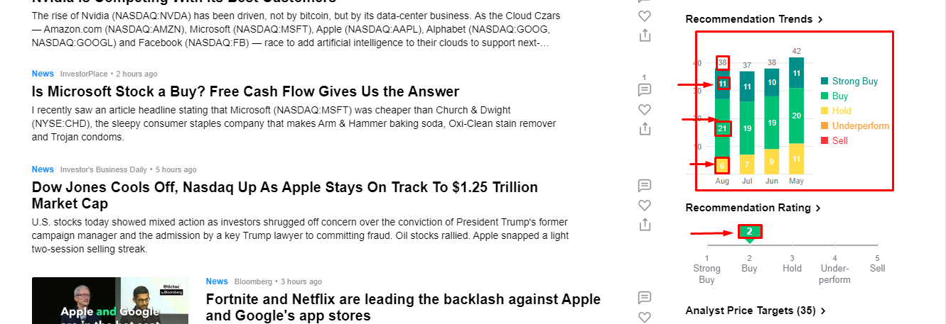 the recommendations of each stock(the info selected in the image I upload) when you go to each page :