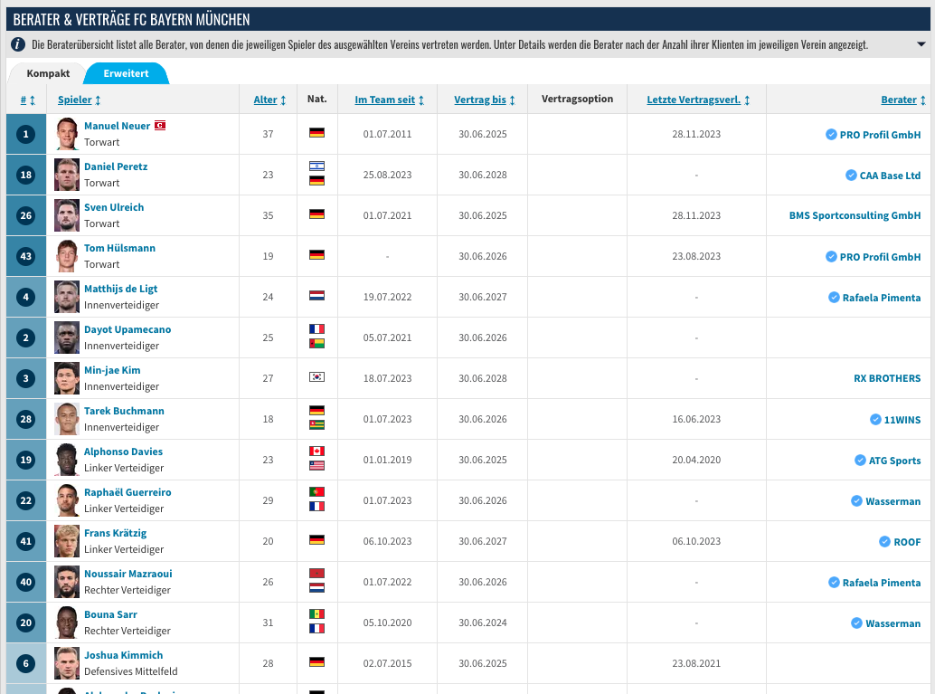 {"_id":"TransfermarktSpieler","startUrl":["https://www.transfermarkt.de/bundesliga/startseite/wettbewerb/L1/saison_id/2023"],"selectors":[{"id":"Tabelle","parentSelectors":["Click"],"type":"SelectorElement","selector":".items > tbody > tr","multiple":true},{"id":"Nummer","parentSelectors":["Tabelle"],"type":"SelectorText","selector":"div","multiple":false,"regex":""},{"id":"Name","parentSelectors":["Tabelle"],"type":"SelectorText","selector":"tr:contains('') a","multiple":false,"regex":""},{"id":"Alter","parentSelectors":["Tabelle"],"type":"SelectorText","selector":"td:nth-of-type(3)","multiple":false,"regex":""},{"id":"Größe","parentSelectors":["Tabelle"],"type":"SelectorText","selector":"td:nth-of-type(5)","multiple":false,"regex":""},{"id":"Fuß","parentSelectors":["Tabelle"],"type":"SelectorText","selector":"td:nth-of-type(6)","multiple":false,"regex":""},{"id":"Im Klub seit","parentSelectors":["Tabelle"],"type":"SelectorText","selector":"td:nth-of-type(7)","multiple":false,"regex":""},{"id":"Market value","parentSelectors":["Tabelle"],"type":"SelectorText","selector":".rechts a","multiple":false,"regex":""},{"id":"Alle Teams","parentSelectors":["_root"],"type":"SelectorElement","selector":"#yw1 tbody tr","multiple":true},{"id":"Teams Neu","parentSelectors":["Alle Teams"],"type":"SelectorLink","selector":".hauptlink a[title]","multiple":false,"linkType":"linkFromHref"},{"id":"Players","parentSelectors":["Alle Teams"],"type":"SelectorText","selector":"td:nth-of-type(3) a","multiple":false,"regex":""},{"id":"Average Age","parentSelectors":["Alle Teams"],"type":"SelectorText","selector":"td:nth-of-type(4)","multiple":false,"regex":""},{"id":"Legionäre","parentSelectors":["Alle Teams"],"type":"SelectorText","selector":"td:nth-of-type(5)","multiple":false,"regex":""},{"id":"Average MW","parentSelectors":["Alle Teams"],"type":"SelectorText","selector":"td:nth-of-type(6)","multiple":false,"regex":""},{"id":"Gesamt MW","parentSelectors":["Alle Teams"],"type":"SelectorText","selector":".rechts a","multiple":false,"regex":""},{"id":"Click","parentSelectors":["Teams Neu"],"type":"SelectorLink","selector":"a.tm-tab:nth-of-type(2)","multiple":false,"linkType":"linkFromHref"},{"id":"Vetrag bis","parentSelectors":["Tabelle"],"type":"SelectorText","selector":"td:nth-of-type(9)","multiple":false,"regex":""}]}