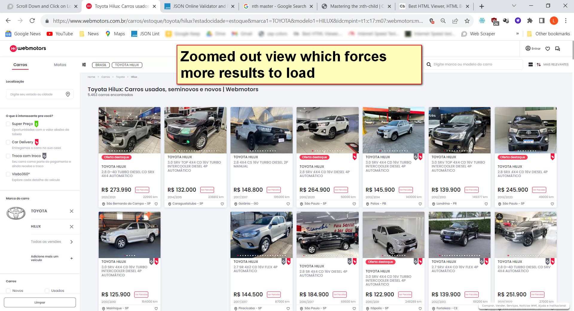 - It is better to filter search results to reduce the number, instead of trying to get all results. In this example, I am only scraping "Toyota Hilux". You can still have multiple URLs in one sitemap.