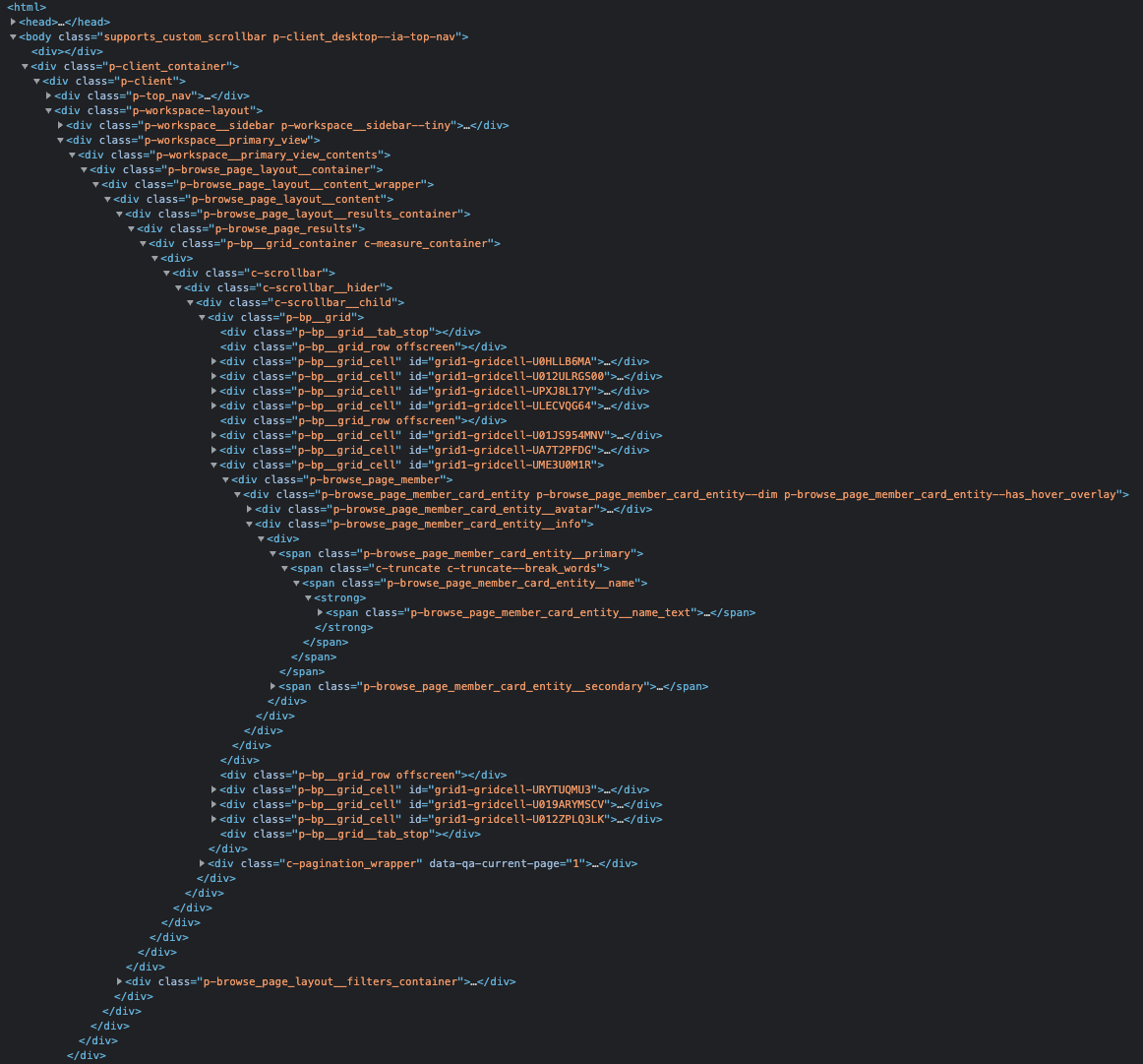 - I'm trying to scrape the web instance of Slack, and is a React app