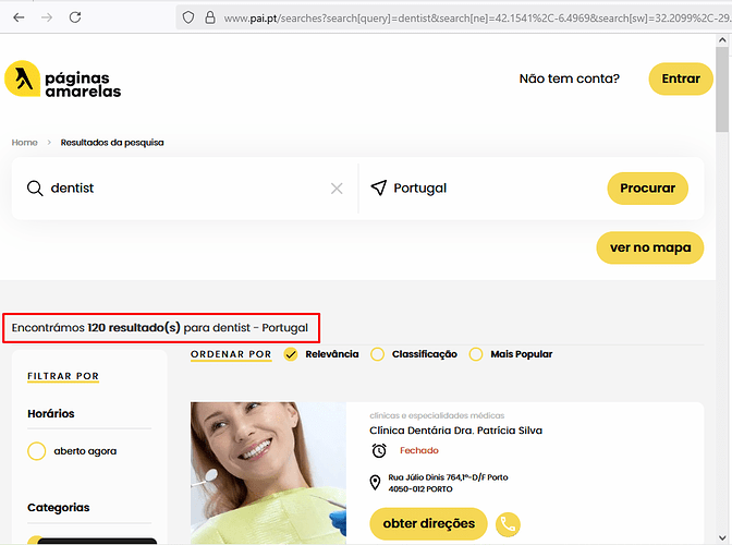 I’m trying to scrape contact data for dental clinics in Portugal, but I’ve run into an issue: the scraping process always stops at exactly 120 contacts, no matter which search page I use.