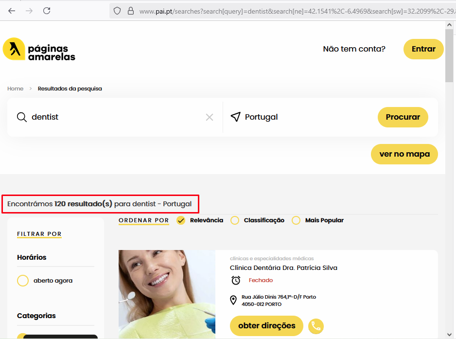 Here’s an example of a URL I’m scraping: Pesquisa - Páginas Amarelas