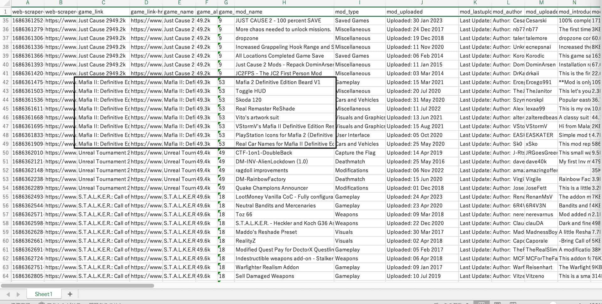 I'm trying to scrape data from the Nexus Mods(https://www.nexusmods.com/) website. I want to scrape information for the first 587 games, the first 20 mods for each game. However, when I actually execute the process, it fails to scrape the complete set of 20 mods for each game. For example, in the game shown in the image, it only retrieved information for 8 mods. Who can told me what should I do?