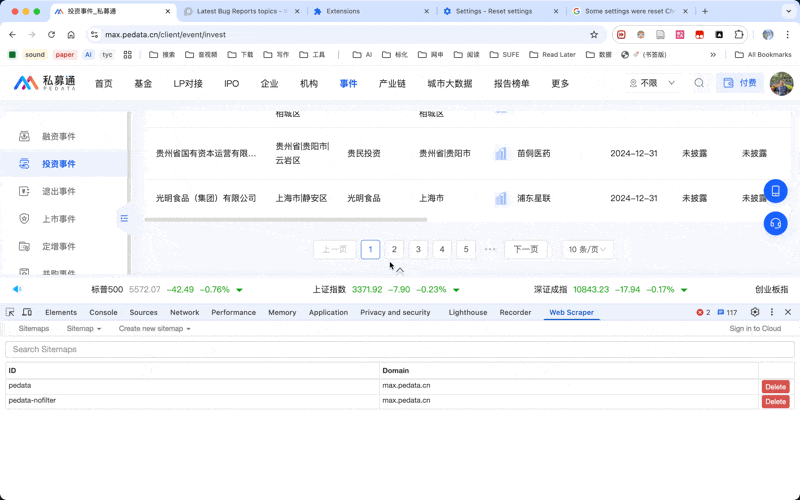 Link to the site you were scraping: https://max.pedata.cn/client/event/invest