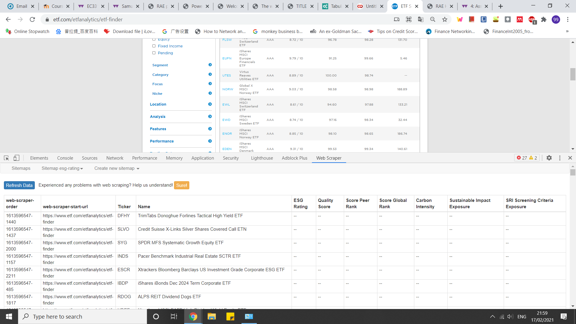 I am scraping data from https://www.etf.com/etfanalytics/etf-finder