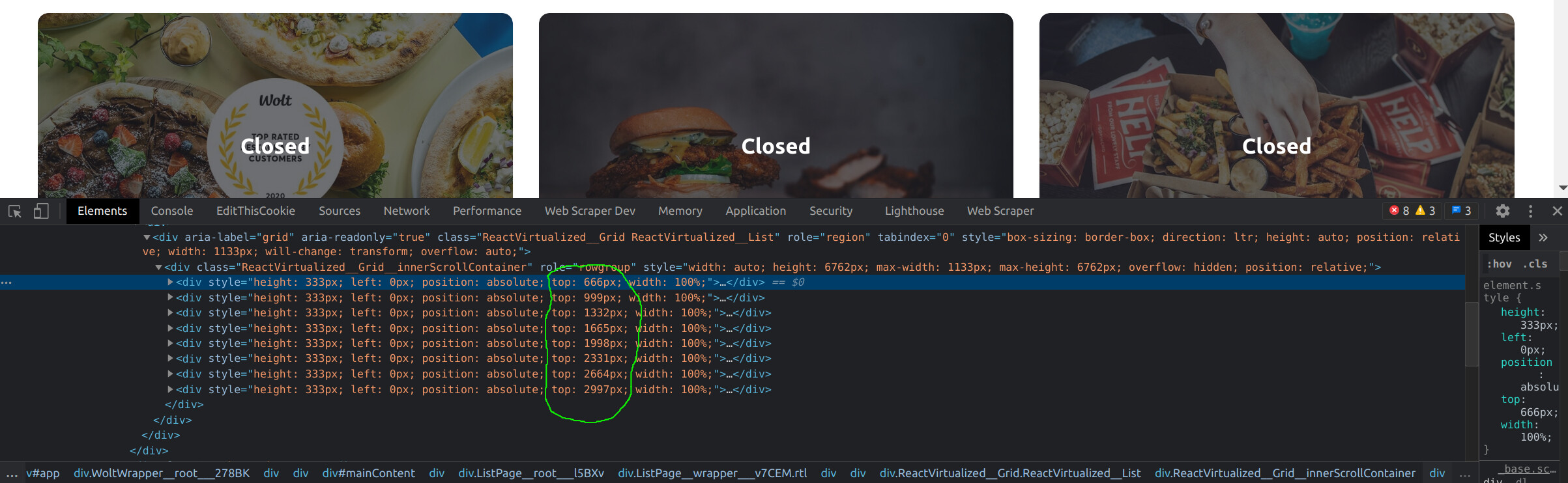 {"_id":"wolt_andre2","startUrl":["https://wolt.com/en/swe/stockholm/discovery/category-burgers"],"selectors":[{"id":"cards","type":"SelectorElement","parentSelectors":["_root"],"selector":"div.DiscoveryVenueListItem__listItem___2jWVS","multiple":true,"delay":0},{"id":"pages","type":"SelectorLink","parentSelectors":["cards"],"selector":"a","multiple":false,"delay":0},{"id":"name","type":"SelectorText","parentSelectors":["element"],"selector":"h1","multiple":false,"regex":"","delay":0},{"id":"address1","type":"SelectorText","parentSelectors":["element"],"selector":"div.VenueSideInfo__primary___1_CZS","multiple":false,"regex":"","delay":0},{"id":"address2","type":"SelectorText","parentSelectors":["element"],"selector":"div.VenueSideInfo__secondary___1Sd3q","multiple":false,"regex":"","delay":0},{"id":"phone","type":"SelectorText","parentSelectors":["element"],"selector":".VenueSideInfo__venueInformation___31X6t .AllergyInfo__phone___24l9L span","multiple":false,"regex":"","delay":0},{"id":"scroll","type":"SelectorElementScroll","parentSelectors":["_root"],"selector":"body:has(h1[data-test-id=\"DiscoveryPageTitle\"])","multiple":true,"delay":2000},{"id":"element","type":"SelectorElement","parentSelectors":["pages"],"selector":"body:has(span[data-localization-key])","multiple":true,"delay":0}]}